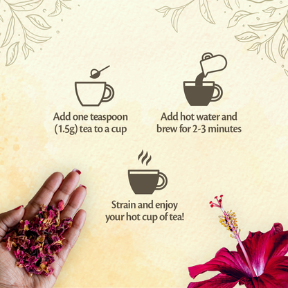 A radiant red herbal concoction enriched with the goodness of hibiscus blossoms and rose petals to keep your skin young and glowing.